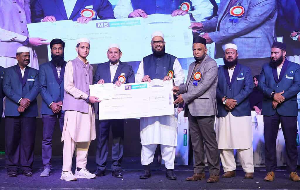 He further highlighted a remarkable coincidence involving MS toppers named Ayesha Fatima, who secured the Intermediate State Top rank in 2005, 2006, and again in 2023. In recognition of this unique legacy, he announced that any student named Ayesha Fatima enrolling in MS Education Academy in 2026 will receive a full tuition fee waiver for the first academic year.