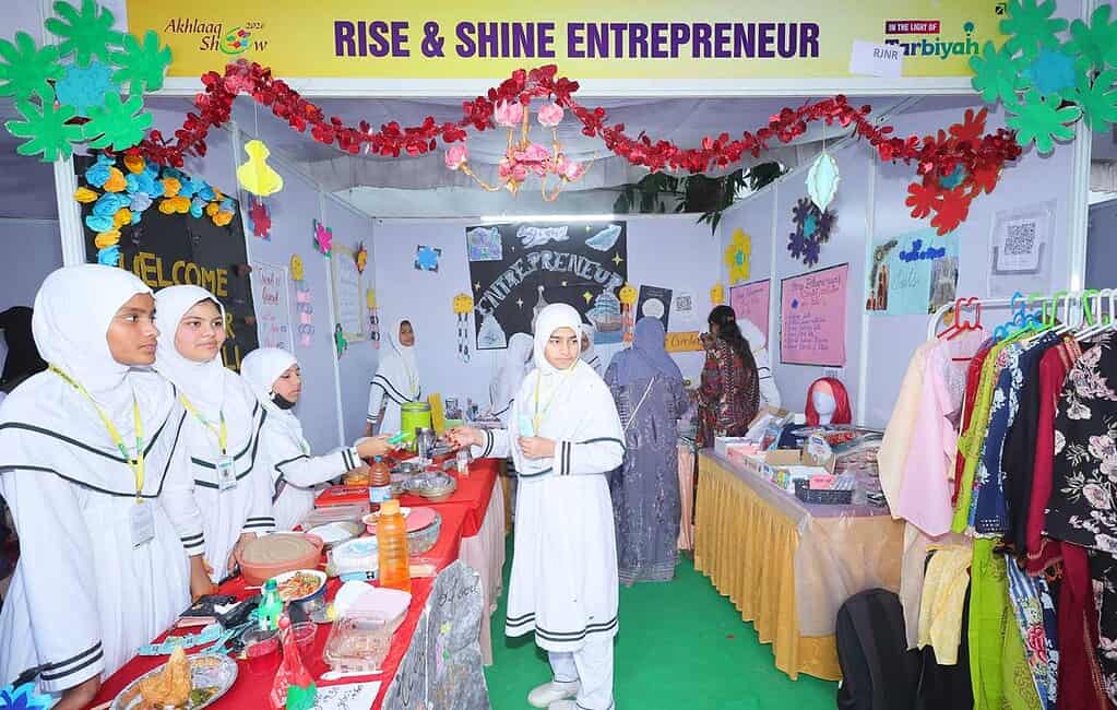Students showcased their creativity and understanding of moral values through engaging stage performances and thematic stalls. Presentations included Hamd, Naat, speeches, and thought-provoking skits, effectively conveying important themes such as Tarbiyah, Salah (prayer), gratitude, discipline, and good manners. These activities demonstrated the institution’s holistic approach toward character development alongside academic excellence.